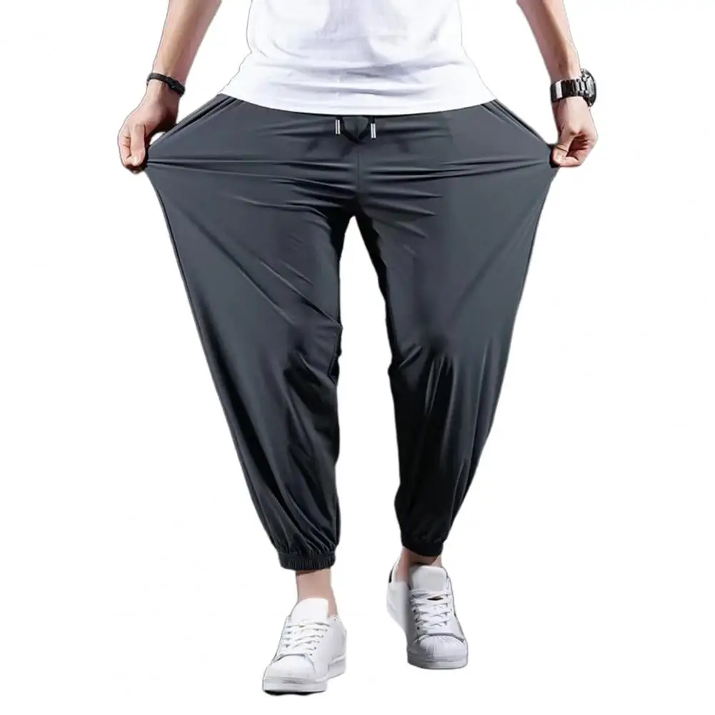 Summer Quick-drying Ice Silk Casual Pants Men's Ultra-thin Elastic Nine-point Pants Loose Drape Solid Beam Feet Pants