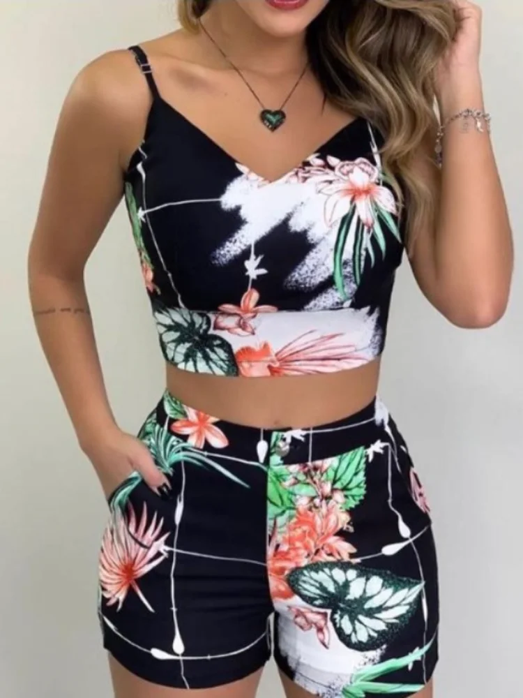 Summer Short Sets Printing Sling Slim Shorts Fashion Elegant Outfits for Women 2023 Two Piece Set for Women Free Shipping Offers