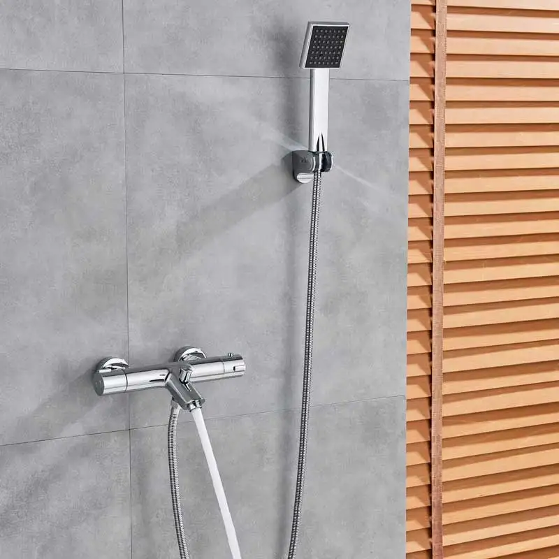 Thermostatic Shower Set Dual Handle Rainfall Bath Shower Mixers with Handshower Wall Mounted Chrome Shower Mixer Faucet