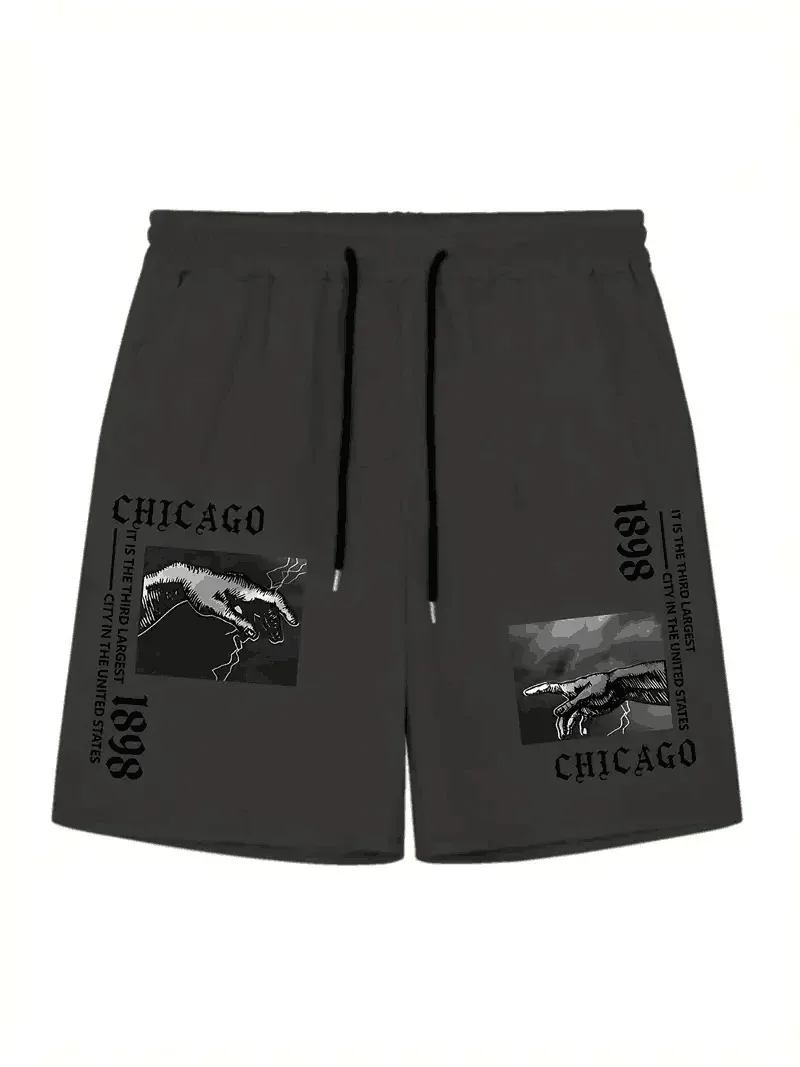 Untouchable Hand Pattern Comfy Shorts Men's Casual Slant Pocket Stretch Waist Drawstring Shorts Basketball Beach Resort