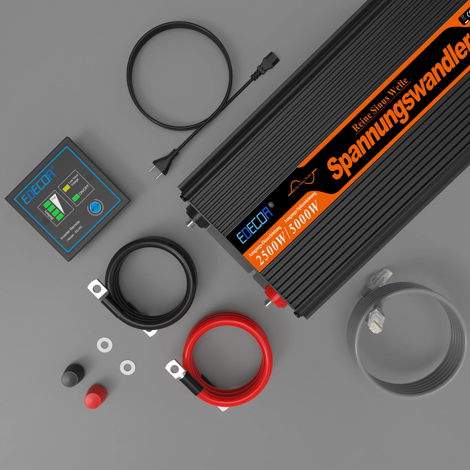 Specifications Rated Power: 2500W Surge Power: 5000W DC Input Voltage: 12V AC Output Voltage: 220V~240V AC Output Frequency: 50Hz AC Output Waveform: Pure Sine Wave AC Input Voltage: 220V~240V AC Input Frequency: 50Hz AC Working Voltage: 200V~260V Charge Current: 20A Maximal Charge Voltage: 14~14 USB Output: DC5V/2 Waveform distortion: THD<3% (Linear load) Efficiency (>90% Load): >90% DC Input Voltage Range: 10~15V Input Low Voltage Alarm: 10±0 Input Low voltage Shutdown Voltage: 10V±0 Input High voltage Shutdown Voltage: 15V±0 No Load Current: < 1 Surge Power Duration: 0 Net Weight: 5 kg Dimensions (L x W x H): 35x15x13 cm Battery Cable (Cross-sectional area*length): 25mm²x600mm Fan Starting Temperature: ≥ forty five ℃ Temperature Protection: seventy five ℃ Features - High high quality DC to AC natural sine wave - The leading management chip adopts high-speed and steady MCU, clever control, real-time monitoring, AC output frequency is extra accurate, and the paintings is extra stable - With bipolar SPWM drive, the output sinusoidal waveform is more correct and the inductive load capability is more potent - Multiple defense functions: input low voltage shutdown protection, enter excessive voltage shutdown protection, battery excessive and coffee voltage alarm, overload protection, output brief circuit protection, overheating protection - Safety isolation: enter and output isolation - UPS and Charger function: UPS capacity uninterruptible power supply, offers a stable, uninterrupted power supply to the burden When the software strength is normal, the UPS supplies the ability to the load, it also charges the battery When the software energy is interrupted, the UPS straight switches to battery strength supply, and continues to supply 220V AC energy to the weight to keep the load operating normally It is well matched with lead-acid batteries, AGM, and LiFePo4 batteries - Automatic reset function: After enter high voltage or low voltage shutdown, when the enter voltage returns to normal, the inverter will automatically restore the output voltage - Soft delivery function, it's easier to run inductive and capacitive loads - Buzzer reminder device, once the security of the inverter is triggered, the buzzer sounds an alarm to remind people - Anodized aluminum case, which not only has a stunning appearance, but additionally has nice heat dissipation performance, wear resistance, insulation, and durability - Dual clever temperature management fan to minimize unnecessary waste of battery power; When the internal temperature of the inverter is ≥45±5°C, the fan begins to work - Screw terminal Pluggable plug for simple cable alternative - Remote control function, can exhibit battery power, battery low-voltage alarm, the switch button can turn on/off the inverter, the remote control port is traditional RJ45, you would update longer cable to extend handheld remote control distance - LCD demonstrate that shows enter voltage, output voltage and charging situations - Dual USB ports, output voltage 5V, maximum current 2, can payment mobile phones and tablets