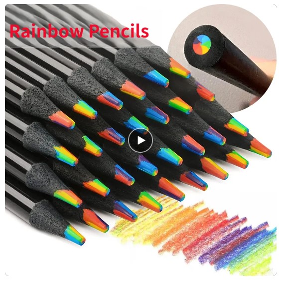 Rainbow Delight: 12-Piece Kawaii Pencil Set with Concentric Gradient Crayons - Perfect Kids Gift for Art, Painting