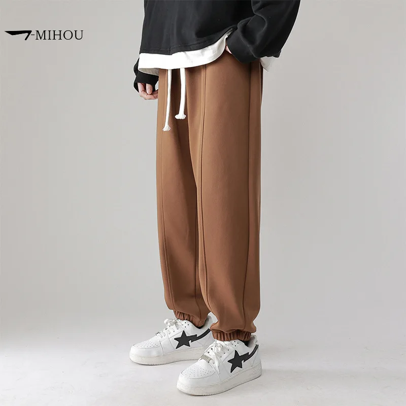 Men Solid Color Pure Cotton Leggings Men's Autumn Winter Loose Casual Sport Pants Male Largo Size Thickened Warm Trousers Men