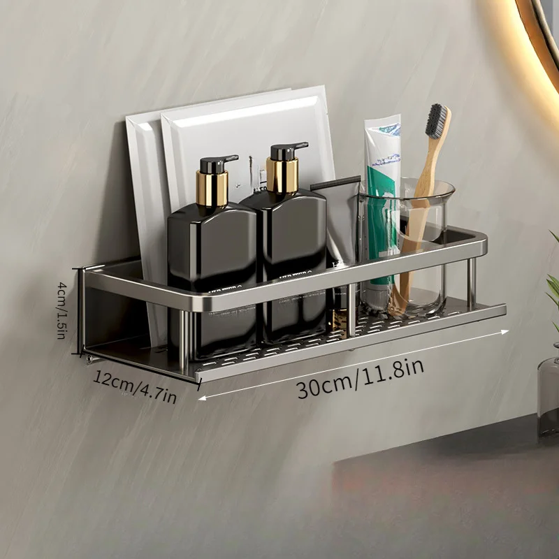 1 Multifunctional Bathroom Storage Rack Shower Storage Rack Wall-Mounted Towel And Bathrobe Hooks Shelf Storage
