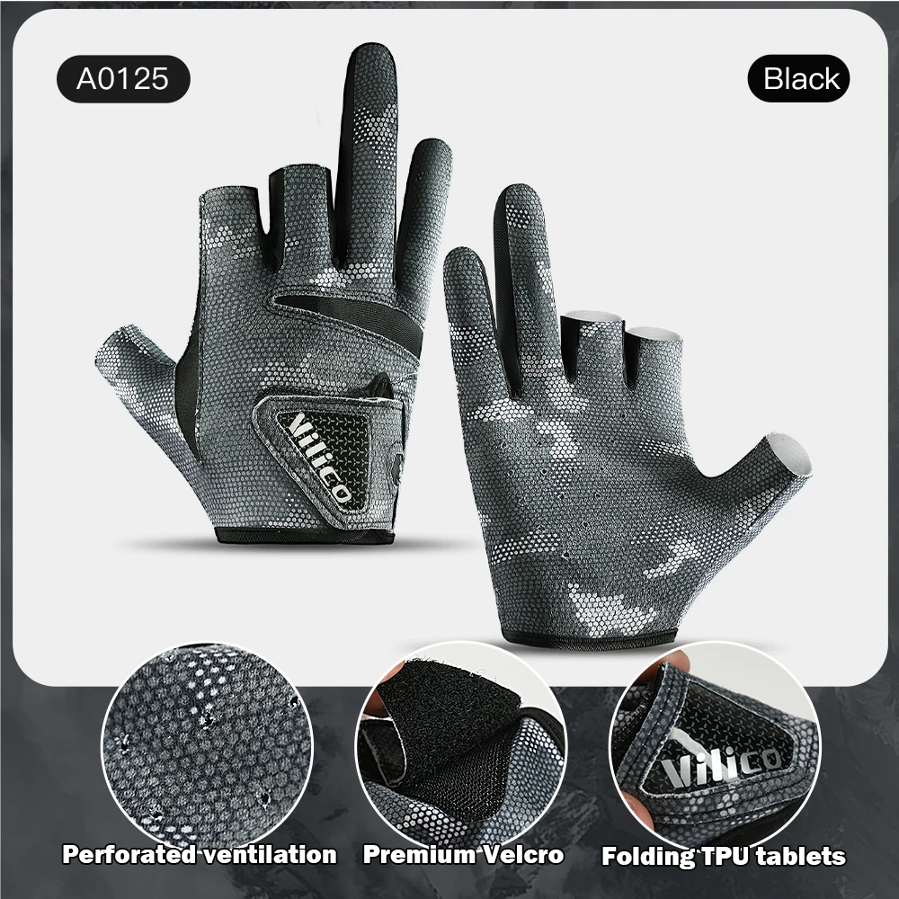 1 Pair Fishing Gloves for Men Summer Fishing Road Sub Sunscreen and Anti Slip Ice Silk Breathable Thin Three Finger Cut Gloves