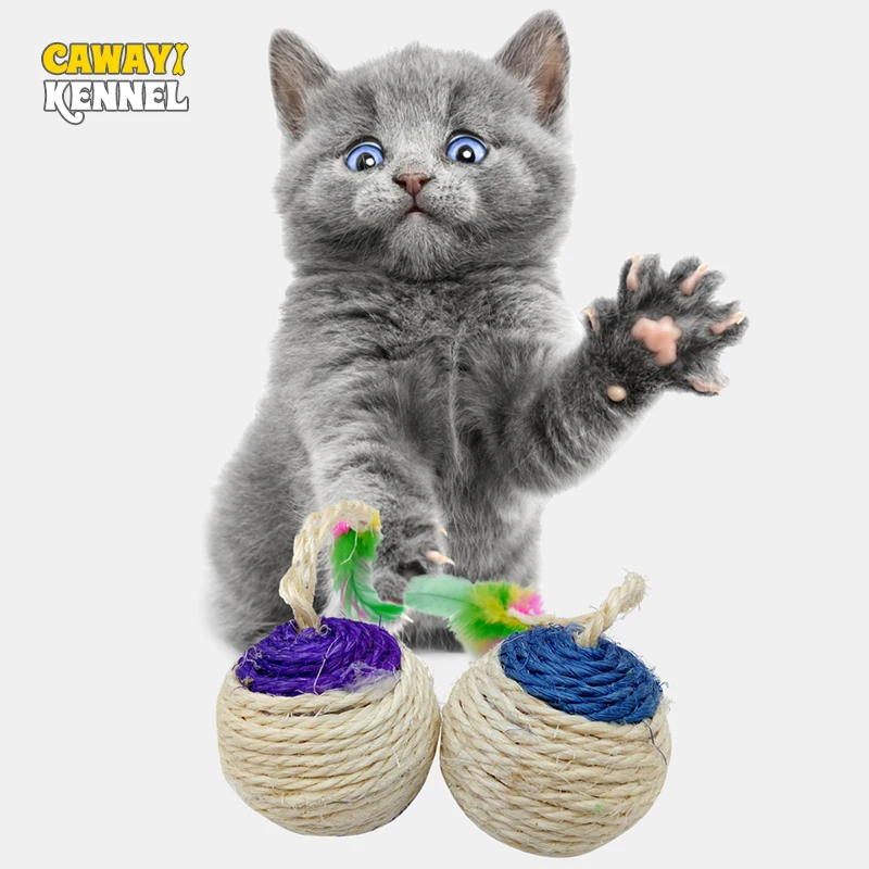 1 Pc Random Color Sisal Interactive Ball Cat Toy Pet Supplies Feather Cat Training Catcher Cat Accessories Random Color Toy Ball
