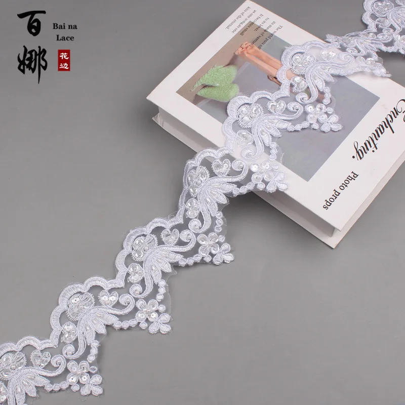 1 Yard 9cm wide Gold Beaded Cording Fabric Flower Venise Venice Mesh Lace Trim Applique Sewing Craft For Bride Wedding Dresses