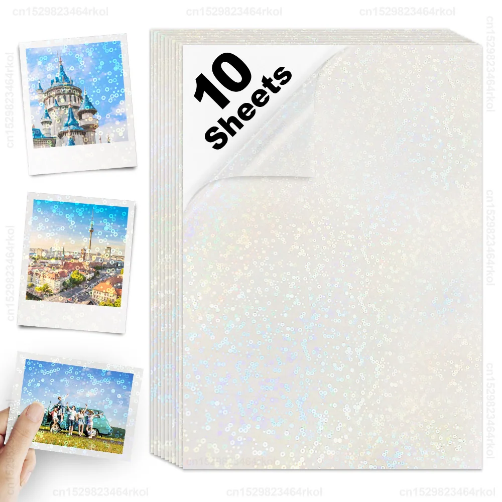 10 Sheets Cold Laminated Film A4 Paper Sticker Transparent Holographic Laminating Film Sheets Waterproof Photo Paper Sticker