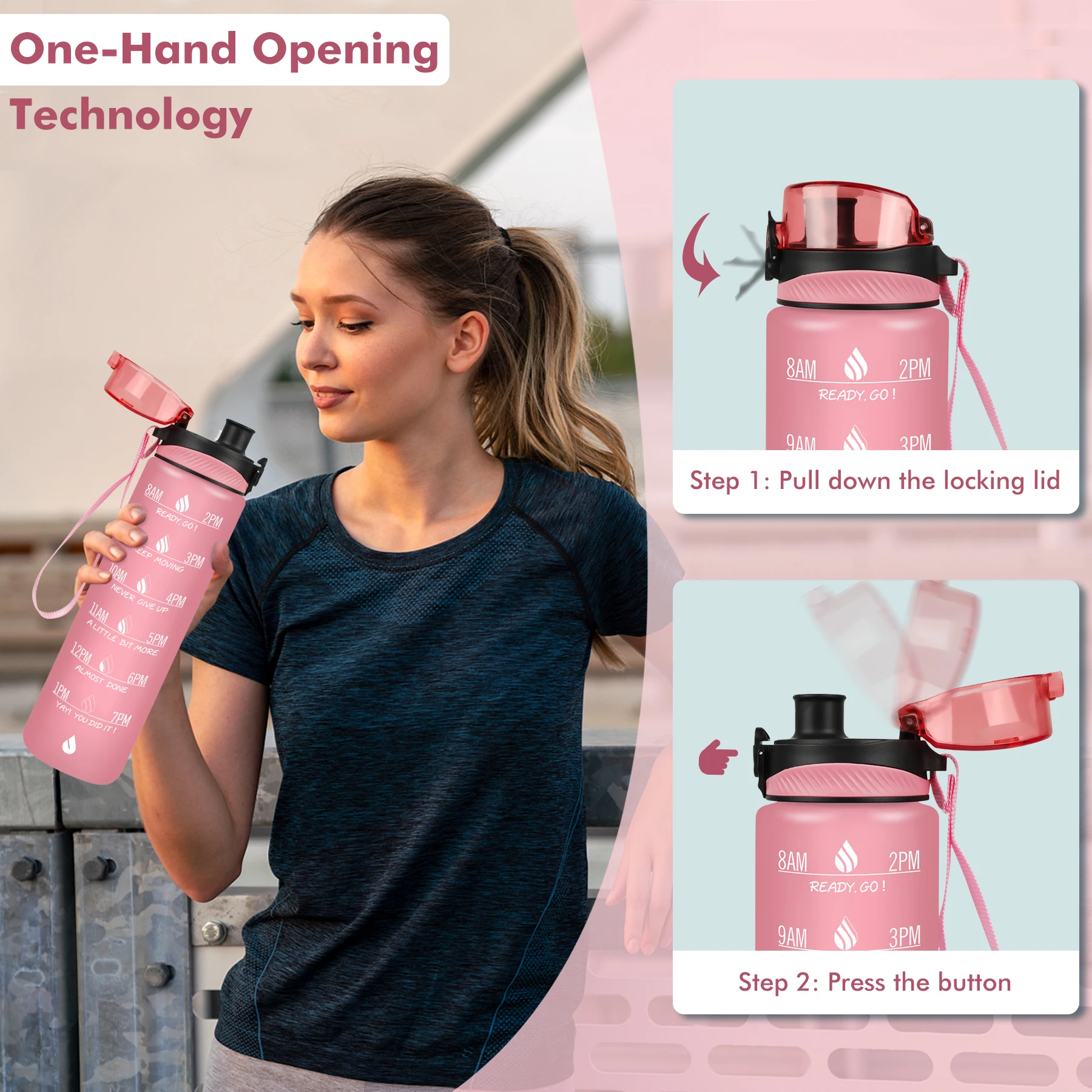 1000ML Motivational Water Sport Bottle with Time Marker Leakproof BPA Free Fruit 1 Liter Travel Kettle Drinking Water Bottl