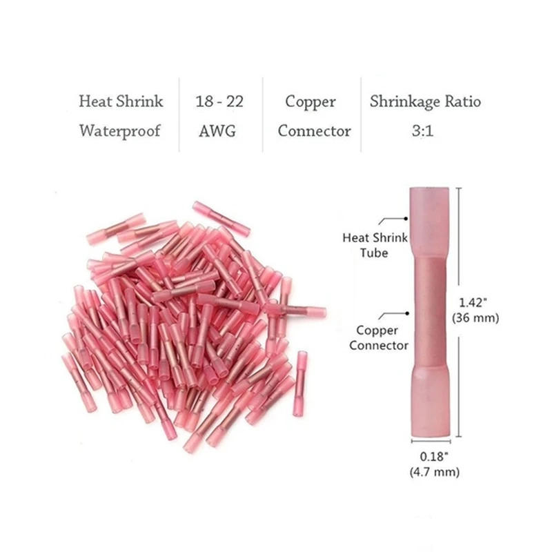 100PCS Assorted Fullly Insulated Heat Shrink Butt Splice Connectors Waterproof Crimp Terminals Soldering Sleeve Kit