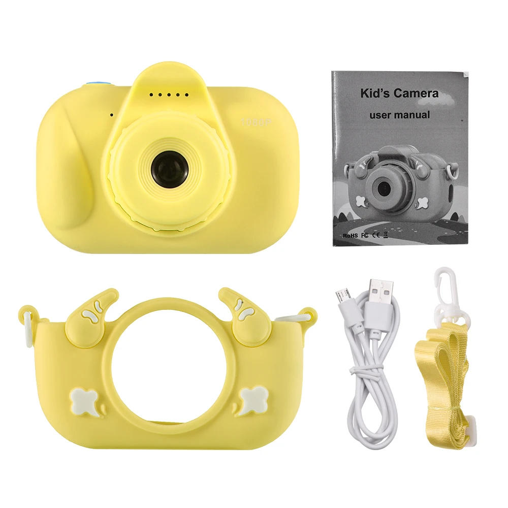 Features: 【Superior Image and Video Quality】The kids cartoon camera, boasting a 12MP pixel, ensures every captured moment is in stunning detail. Additionally, it records 1080P videos for clearer photographic works. 【Creative Filters and Stickers】This digital camera comes equipped with an array of artistic filters and adorable stickers, adding a playful and imaginative flair to your pictures. 【Unlimited Creativity and Entertainment】The cartoon camera is an ideal choice for children who enjoy expressing their creativity and imagination. It offers a variety of filters, stickers, and photo editing tools. 【Long-lasting Battery Life】With an inbuilt 800mAh high-capacity battery, the camera can continuously shoot for nearly 3 hours. 【Large IPS Screen】The digital camera comes with a 2.0-inch IPS screen that delivers a bright and vibrant display. This large screen allows your child to easily view and modify their photos and videos. Specifications: Resolution: HD(1280*720); FHD(1920*1080) Image quality: 1M/2M/3.0M/5M/8M/12M Date Tag: Date watermark,default is on Beep sound: default is on Auto Power: default is off Picture resolution: 1M(1280*720); 2M(1920*1080); 3.0M(2560*1440); 5M(3200*1800); 8M(3800*2160); 10M(4032*2520); 12M(4032*2880) Video resolution: HD(1280*720); FHD(1920*1080) Game: Snake Video format: AVI Charging time: 3-5 hours Extended storage: TF card,32G (8500 photos) Charging voltage: DC-5V/1A Battery Capacity: 800mAh Standby Time: 3h Weight: 94g Dimensions 107 * 47 * 67mm Packing List: 1 * Digital Camera 1 * Lanyard 1 * USB Cable 1 * Silicon Protective Cover 1 * Manual