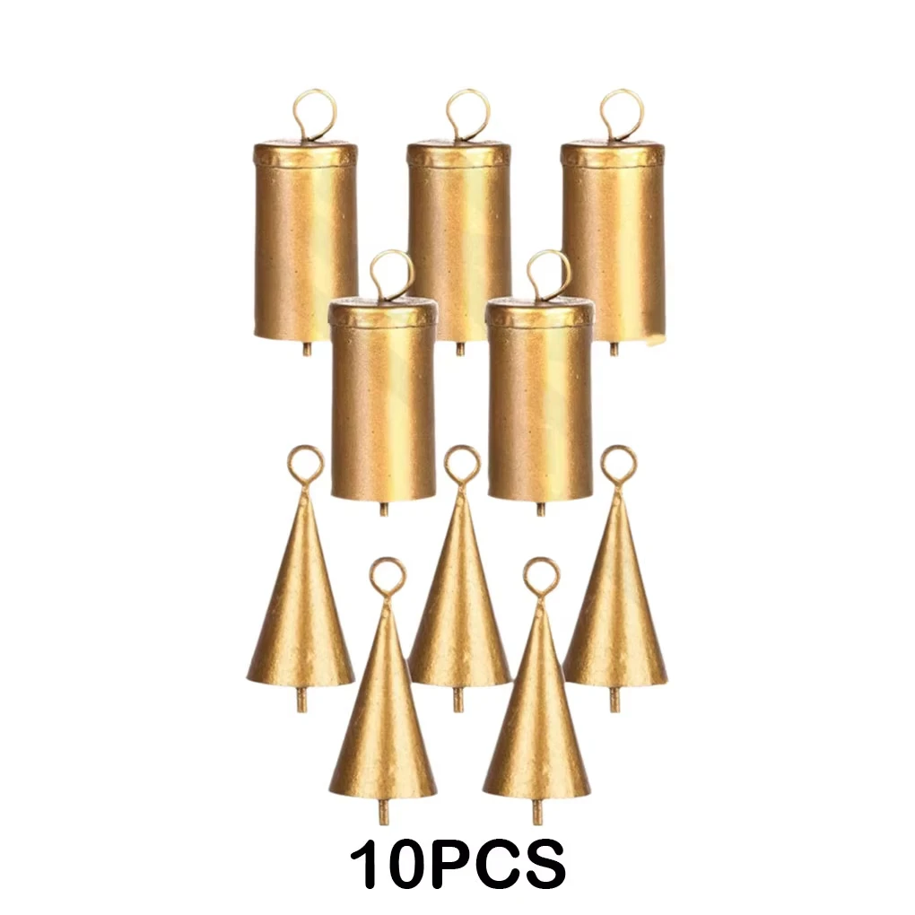 10PCS Christmas Ornament Bells Conical Barrel Shaped Retro Gold wind Chimes Wall Hanging Christmas Decoration Bell New Year Gift