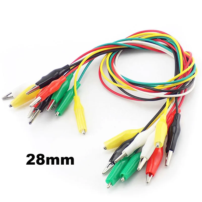 Product Description: 1,Item: Double-ended crocodile/alligator clips 2,NOTE: Color coded leads enable you to check circuits without crossing wires or inflicting shorts, Can be used as low voltage jumper leads 3, Product features: Alligator clips are product of iron and rust-proof 4, Overall length with sheath clip: S: 35mm, M:38mm 5, Remove sheath metal length: S:28mm, M:35mm 6, Total length of belt line: S:53cm,M:50mm 7, Maximum opening: S:1cm,M:1 8, Alligator clip mouth width: S:2, M:3 9:Color:Black,Red,Yellow,Green,White NotePlease allow zero error because of guide size pls make sure you do not intellect earlier than you ordering Package: 10pcs Double-ended crocodile Small(28MM)/Medium(35mm)size for favor