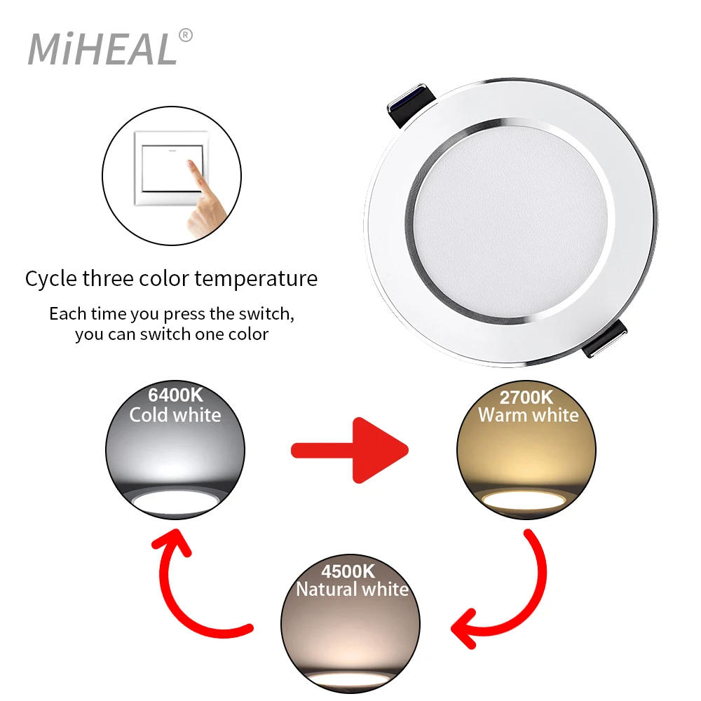 LED DOWNLIGHT Voltage: 230V=176V-264V Body color: white silver Color temperature: Three-color dimmable/Cold white/Warm white Size: see particulars web page and main picture (dimensions of monochromatic mild and tricolor dimmable are different!!!) Package: 10pcs*led downlight Please note: the scale of the monochromatic downlight and the three-color dimmable aren't the same! ! !