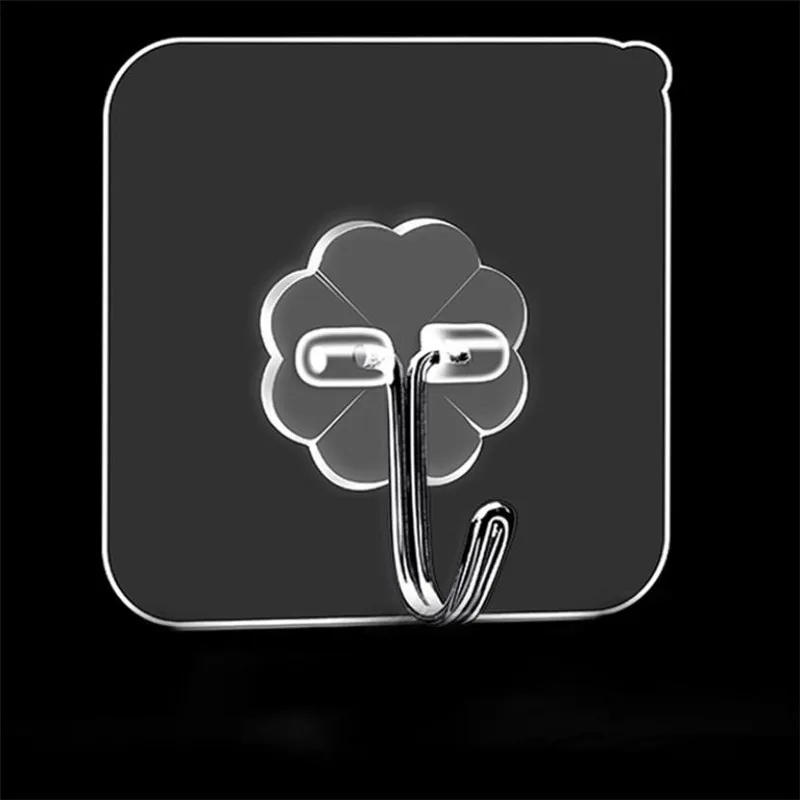 10PCS Transparent Stainless Steel Strong Self Adhesive Hooks Key Storage Hanger for Kitchen Bathroom Door Wall Multi-Function