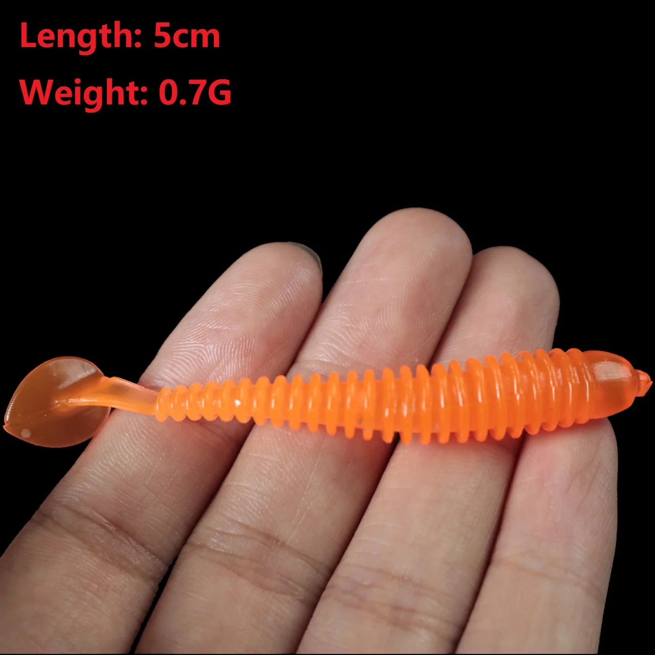 10pcs/lot gentle Fishing Lure 5cm/0 Jig Wobblers Swimbait Artificial Spiral T tail Silicone Bait computer virus pesca Carp Bass LuresLength: 5cmWeight: zero