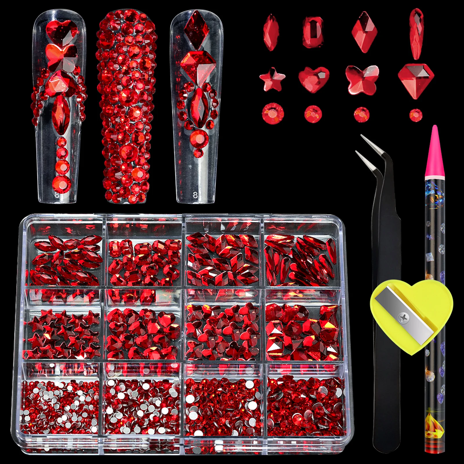 12 Grid Diamond Jewelry Set for Nail Art Decorations Nail Ab Flat Bottom Drill Nail Art Luxe Nail Shaped Diamond Illusion Color