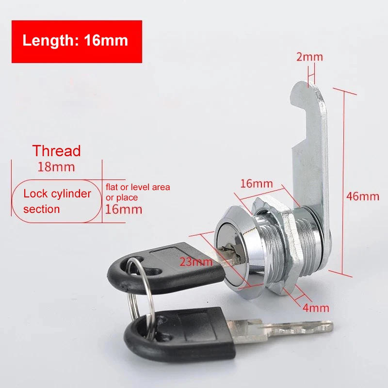 1~20PCS Cylinder Locks Door Cabinet Mailbox Padlock Drawer Cupboard Box Lock With 2 Keys Cam Locks For Furniture HardwareDescription:material: metalSurface treatment: brilliant chrome, shiny nickel.Lock size: 16mm, 20mm, 25mm, 30mm (diameter)Specifications:1.[Easy Installation]: Allows you to easily lock any style of filing cabinets, storage cabinets, drawers, instrument cabinets, drawers, mailboxes, etc.2.[ Scenarios Applicable]: Suitable for wooden door, steel door and glass door, ultimate for table drawer, glass door and locker, lock all your personal goods securely.3.[With 2 Keys]: It additionally comes with 2 keys for cam lock, so that you will constantly have4. [Lock plate thickening treatment]: nice protection effect5. [Bold screw]: 5.0mm thick screw, no trouble if lock piece is loosePackage Included:1*Lock2*Keys