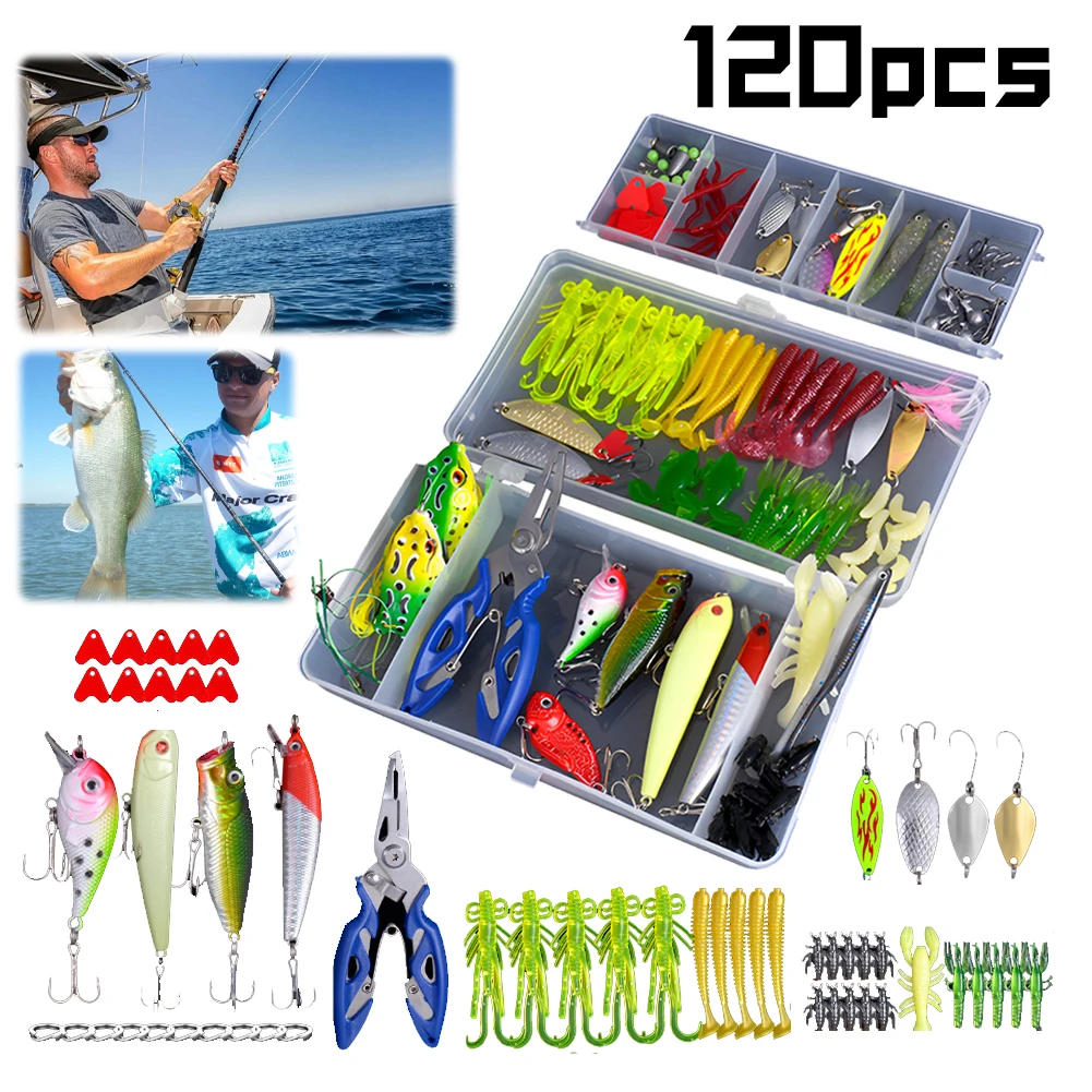 120Pcs Fishing Lures Kit Multifunction Topwater Bait Rigs Carbon Steel Biomimetic Fish Bait for Outdoor Fishing Accessories Tool