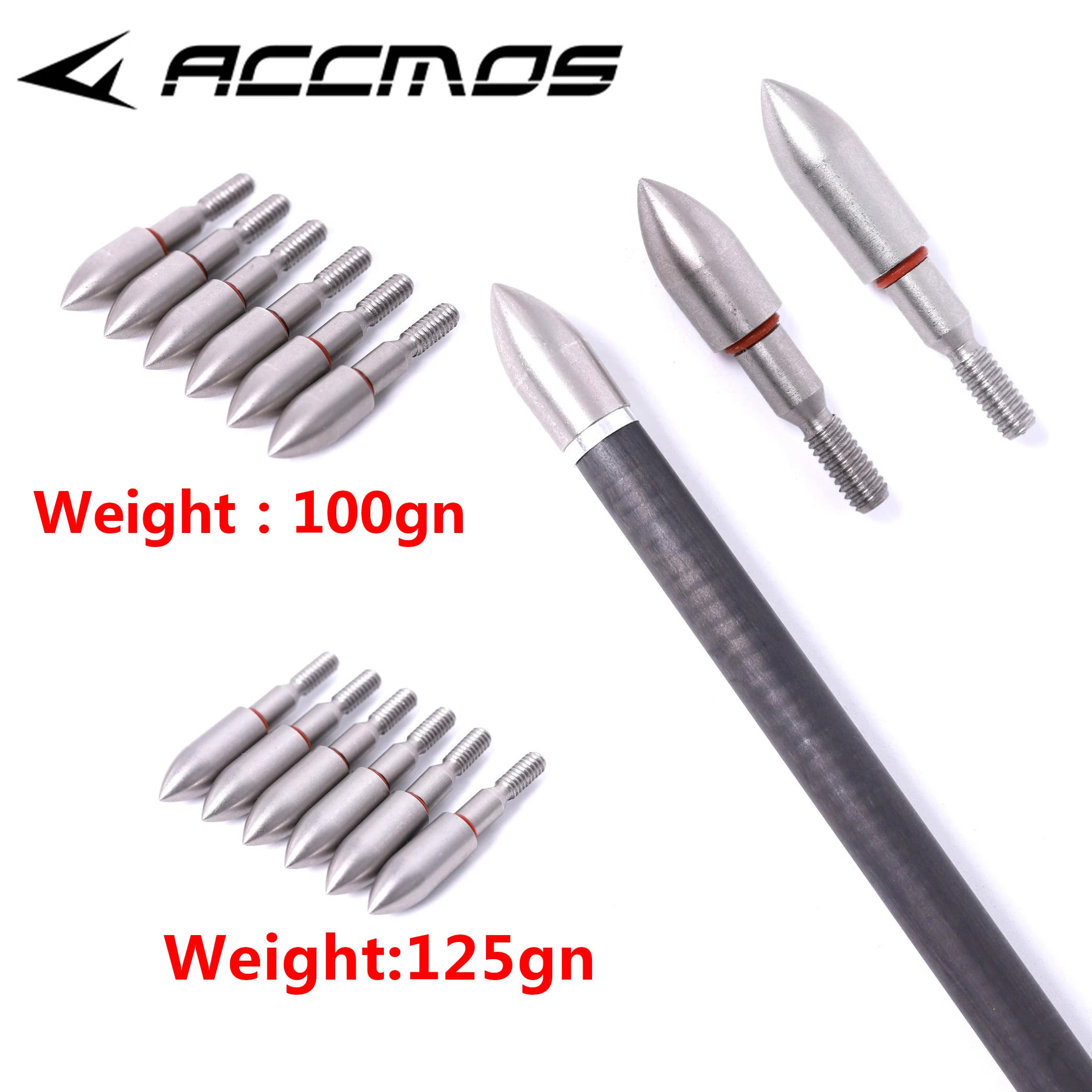 one hundred / 125Grain Stainless Steel Arrow Head Archery Arrow Point For ID 6 OD 7 arrow shaft Arrow Tips Accessory Material : Stainless Steel Weight :100 Grain 125 Grain Fit for ID 6 OD 7 arrow shaft Screw :8/32 Standard screw package : 6pcs /12pcs /24pcs arrow heads