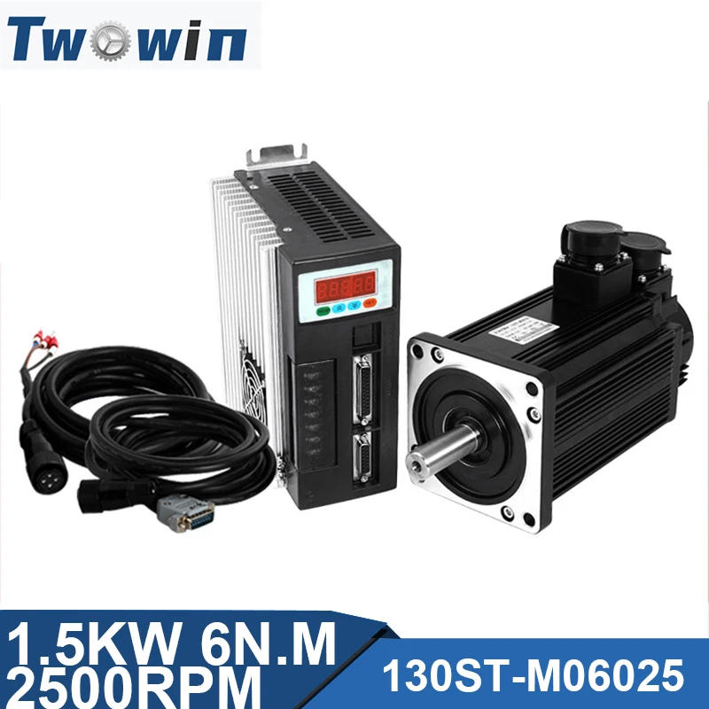 130ST-M06025 1.5KW AC Servo Motor 1500W 2500RPM 6N.M AC Drive Permanent Magnet Matched Driver Encoder Cable