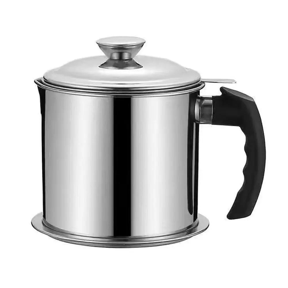 1.4L/1.9L Oil Filter Pot Large Capacity 304 Stainless Steel Oil Pot Grease Keeper Storage Container Cooking Oil Strainer