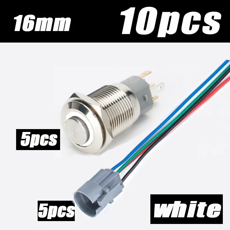 16MM 10Pcs Metal Button Switch LED Light Waterproof Momentary Self-Locking Car Engine Power Supply 3-6V12-24V Red Blue Yellow