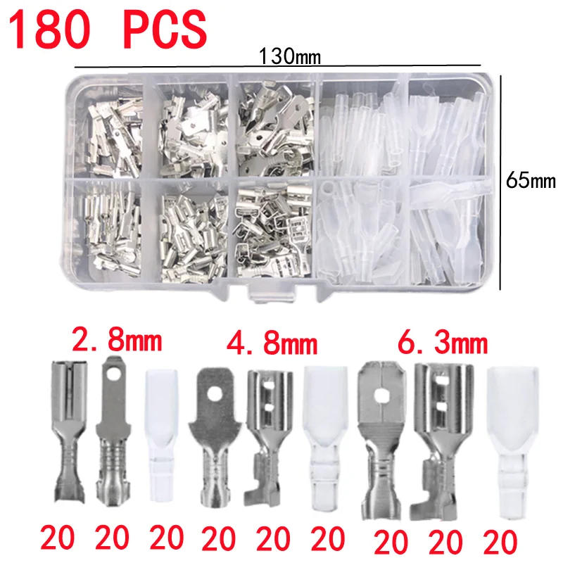 180pcs Box-Packed,Gold/Silver Crimp Terminal,Male and Female Docking 2.8/4.8/6.3mm,Wire Connector,Electrical Terminals