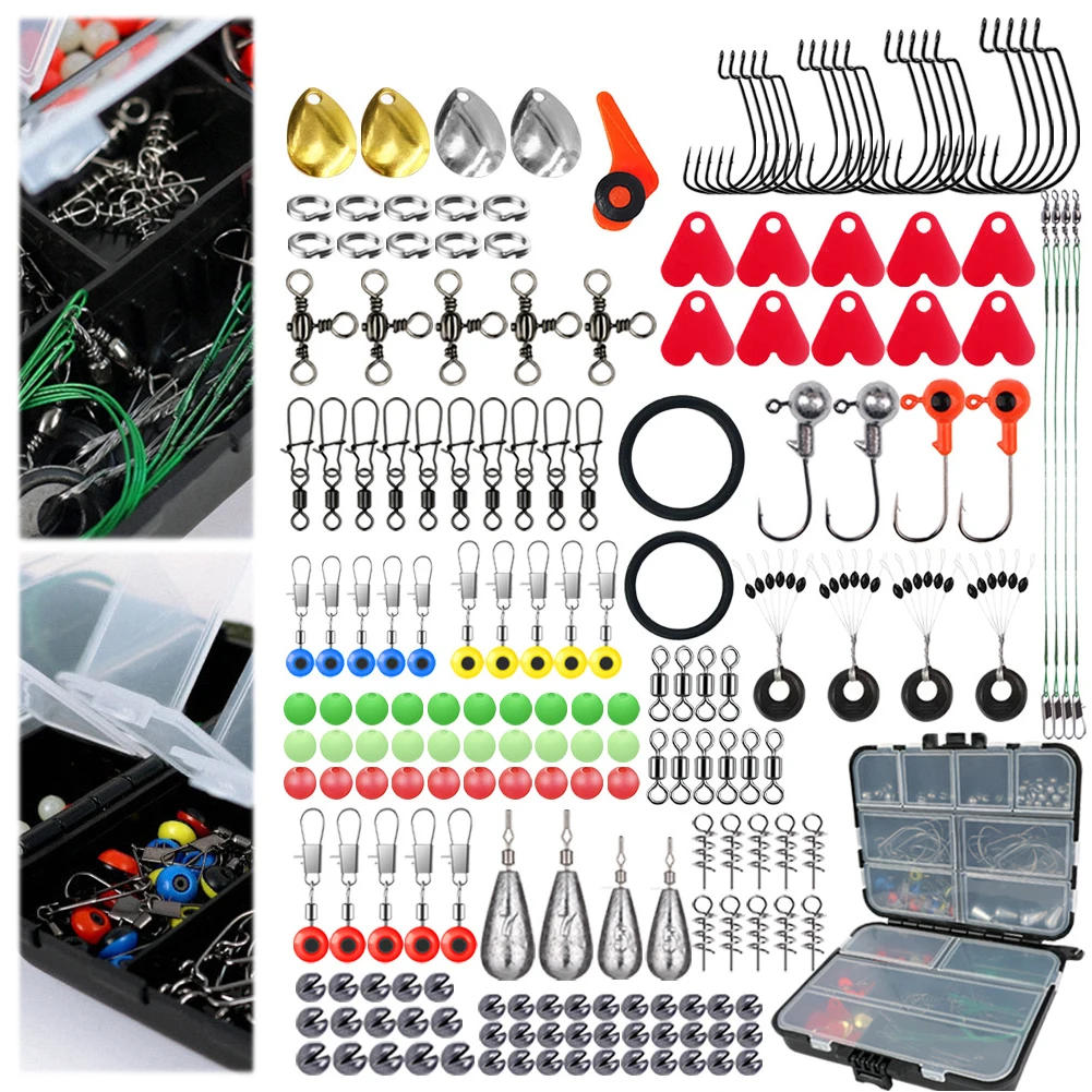 187pcs Fishing Accessories Kit Including Fishing Hooks Sinker Weights Outdoor Fishing Accessories Set Carp Fishing Accessories