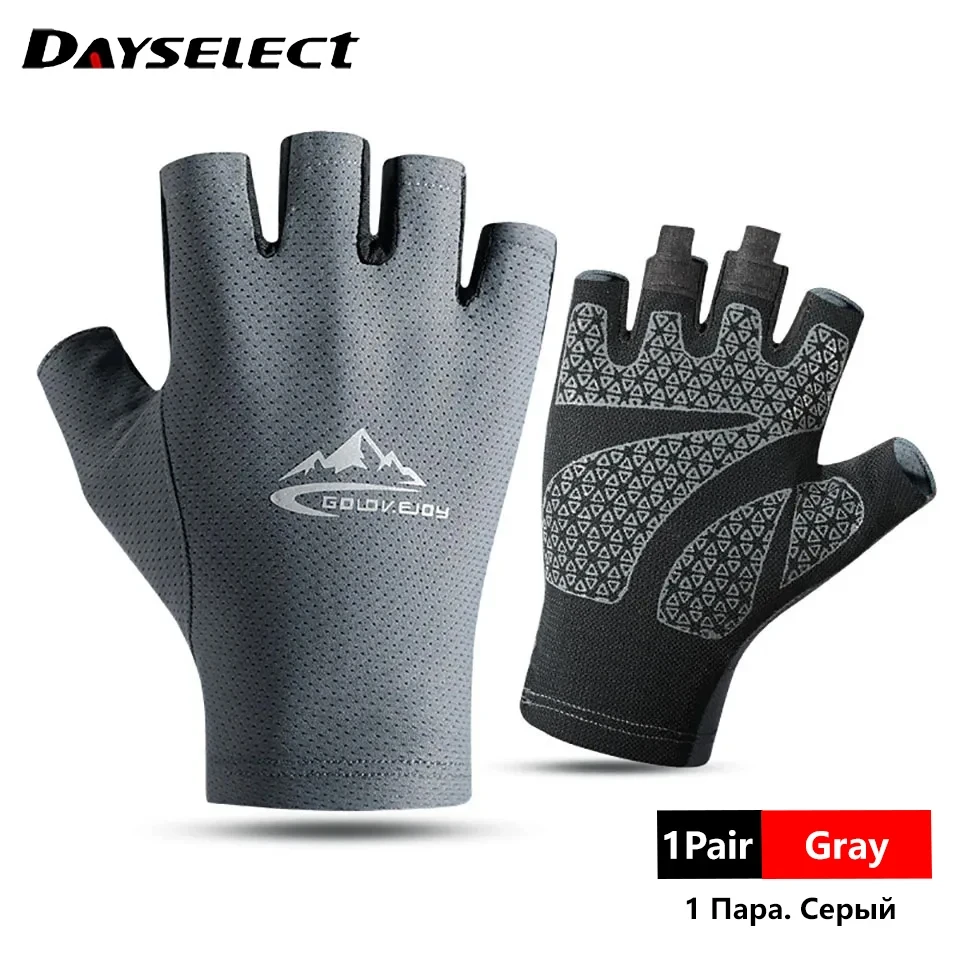 1Pair Cycling Gloves Ice Silk Sun Protection Breathable Half Finger Running Fishing Gloves Ridding Gloves Anti Slip Men Women