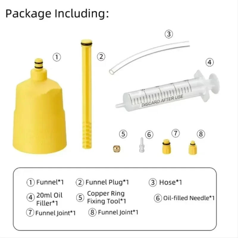 Bicycle Brake Mineral Oil Set 60ML for Mountain Bike Brake System Hydraulic Disc Brake Bleed Funnel Anti-Oil Plug Bleed Kit Tool Description Features: 1 This set could be linked to grease bottles and syringes, and can also be used for many raise and fork oiling 2 The bicycle brake oiling device set is small and light It won't upload any burden on your riding With this bicycle fix device kit, you could enjoy your experience safely 3 You can convey this bicycle brake bleeding equipment with you when driving a bicycle It takes up much less space and may be easily put into any bag, making the fix instrument package clean to hold four The rounded and slim head can soon and simply enter narrow locations The bicycle brake fix tool is faster and more effective than other regular tools Specifications: Material: Plastic Color: As shown in the picture Size: As proven within the picture Conversion: 1cm=0 inches, 1 inch=2 Style: 60ML brake fluid/oil filling tool/60ML brake fluid and oil filling tool set (optional) Category: Oil filling software Note: 1 to handbook measurement, please allow a distinction of 1-4cm Thank you! 2 to diversified monitors, the color you spot could vary from the particular color Please be awar three genre and quantity of the following unmarried gross sales photo are the transport standards, thank you! Package includes: 1 * Oil filling device