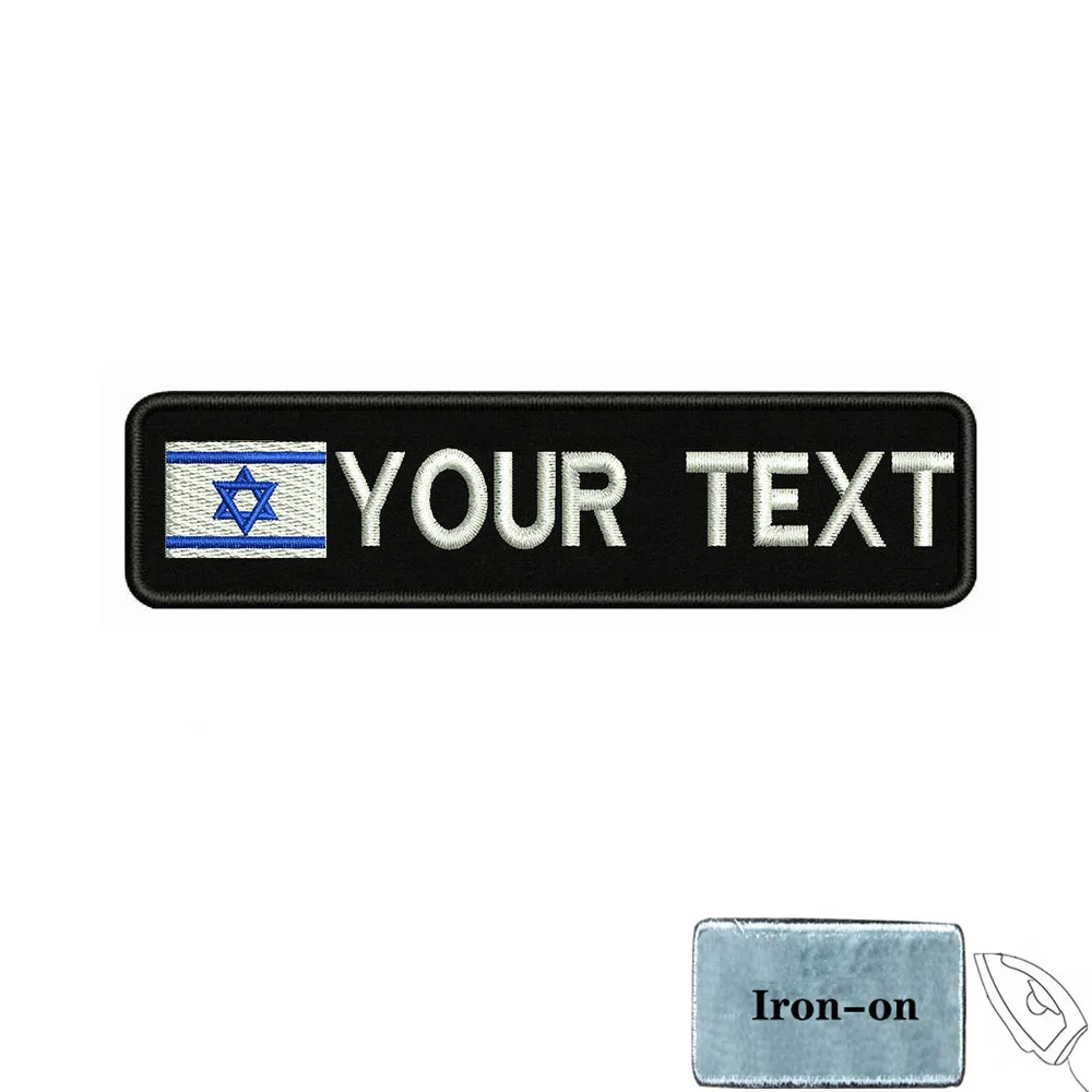 1PC 10cmX2.5cm Israel flag Custom Personalized Name Patch Stripes Badge tags Armband Magen David Red Iron On Or Hook Loop