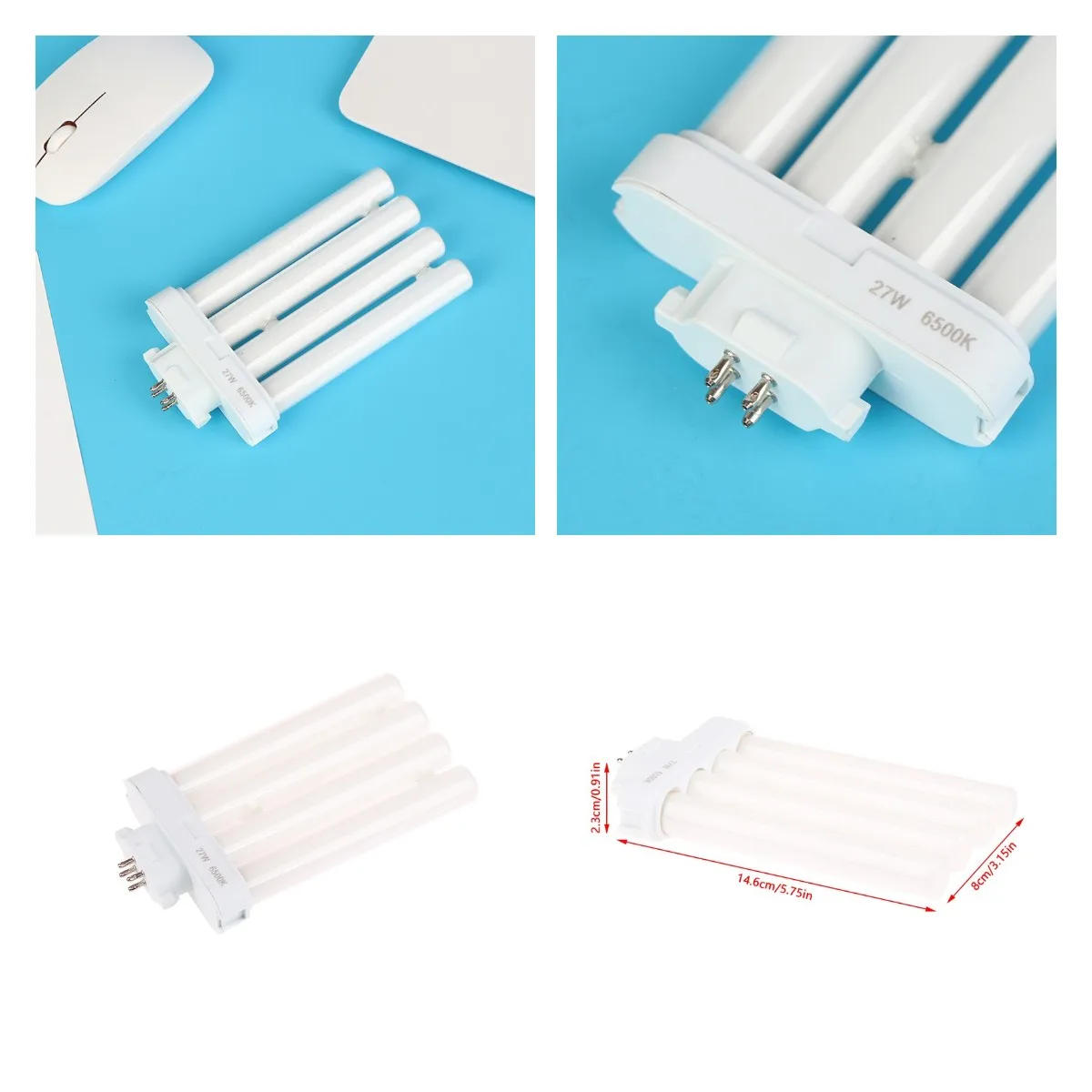 1Pc 27W AC220V-240V Four Pins Fluorescent Light Tube Square Needles Eye-Protection Light Tubes 6500K Energy Saving Lamp