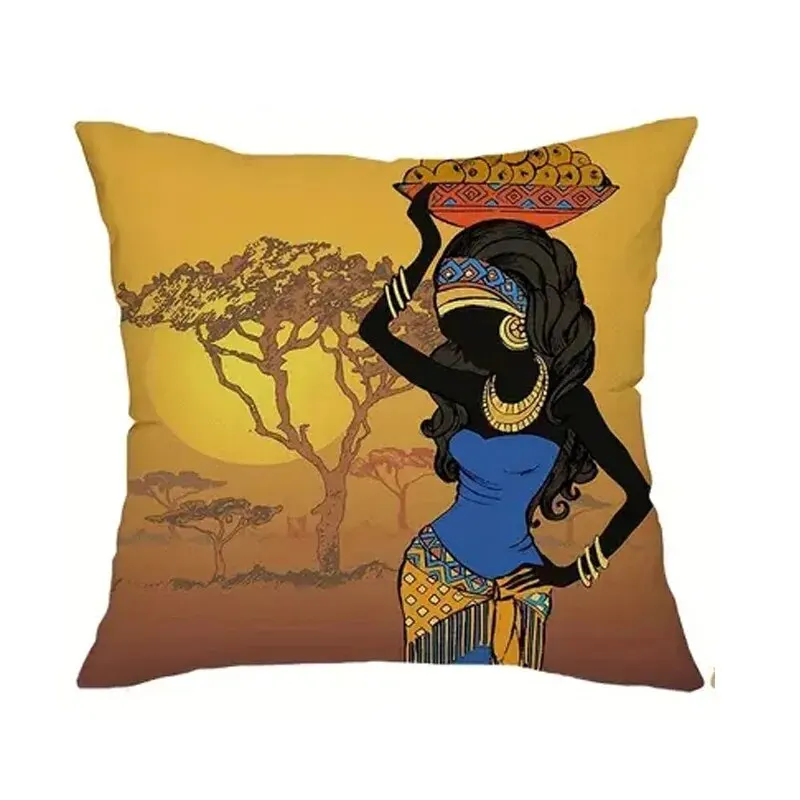 1pc African American Woman Square Cushion Cover Home Decor, RoomDecor, Bedroom Decor, Collectible Buildings Accessories