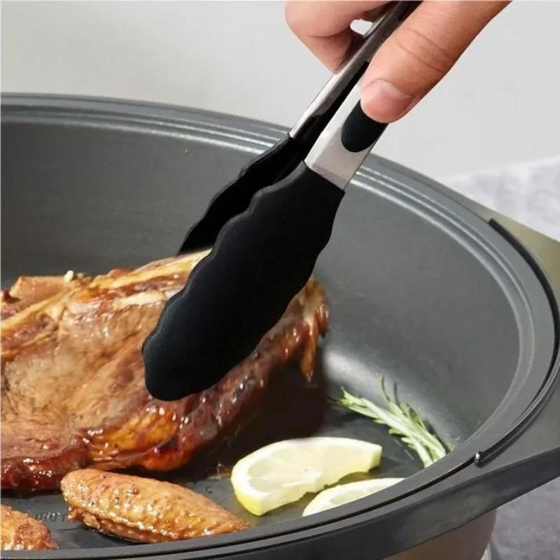 1PC Silica Gel Stainless Steel Black Baked Salad Accessories Kitchen Tools Bread Clip Home Party Picnic BBQ Clip Roast Steak