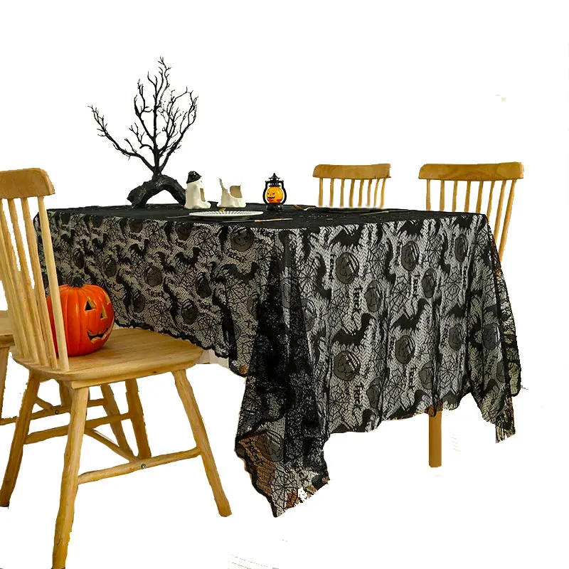 1PCS Halloween Bat Spider Web Tablecloth, 37*55in, Polyester Material, Suitable for Bar, Haunted House, Home Desktop Decoration