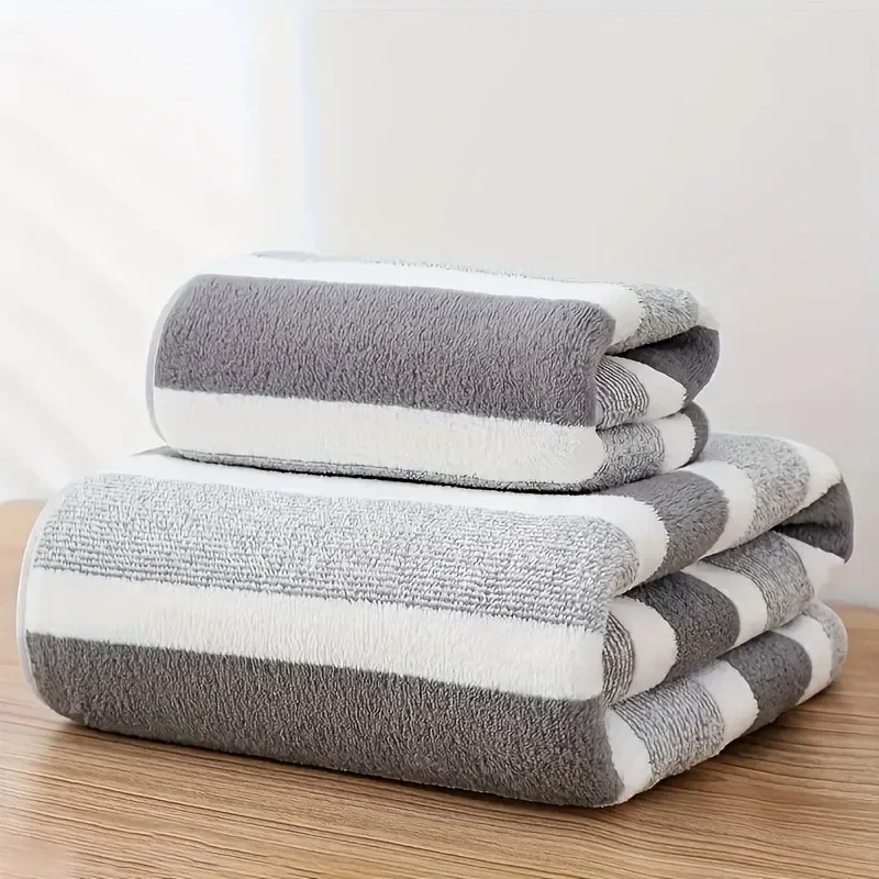 2 Pc Quick-Drying Striped Towel Set for Soft and Absorbent Bathroom Experience Includes 1 Bath Towel and 1 Hand Towel Sauna