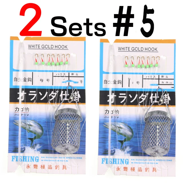 2 Sets String Hooks Sabiki Rig with 7 Fishhooks Sea Fishing Flasher Rigs With Swivel Snap Bait Rigs With Bait Basket Specifications String Fishing Rig Hook Product weight: 9g or so 7 hook flies on a rig Hook top Green Part is lumious Hook Size: , for prefer Hook Material: excessive carbon metallic Hook color: golden Package: particular bag Selling Unit: 2 sets/lot Note 1: The display displayed color may well slightly various from precise color; Note 2: Size measured manually,small length diviation tolerance shall be allowed;