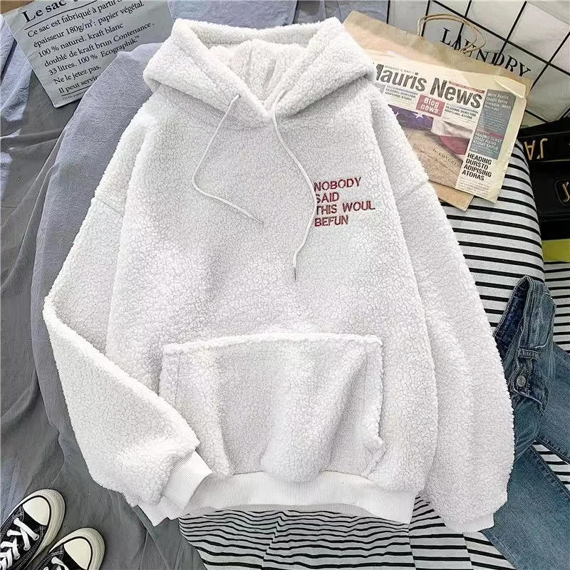 2023 Autumnand New Love Lamb Wool Cotton-padded Jacket Double Collar Coat Couple Y2k High Street Retro Cute Loose Coat Warm Coat
