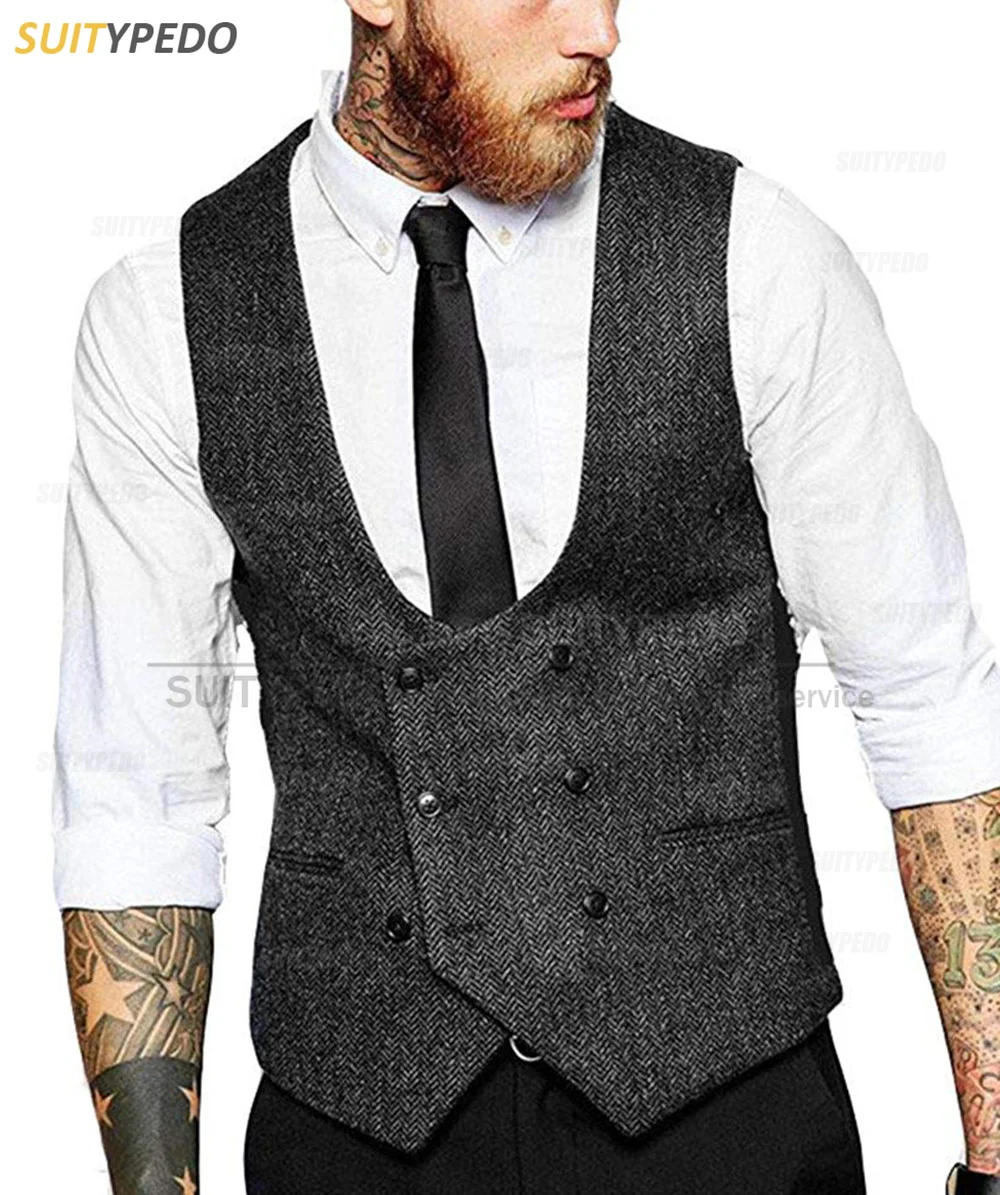 2023 Newest Men Suit Vest Autumn Winter Tailor-made Herringbone Waistcoat Formal Party Business Classic Male Costume 1 Piece