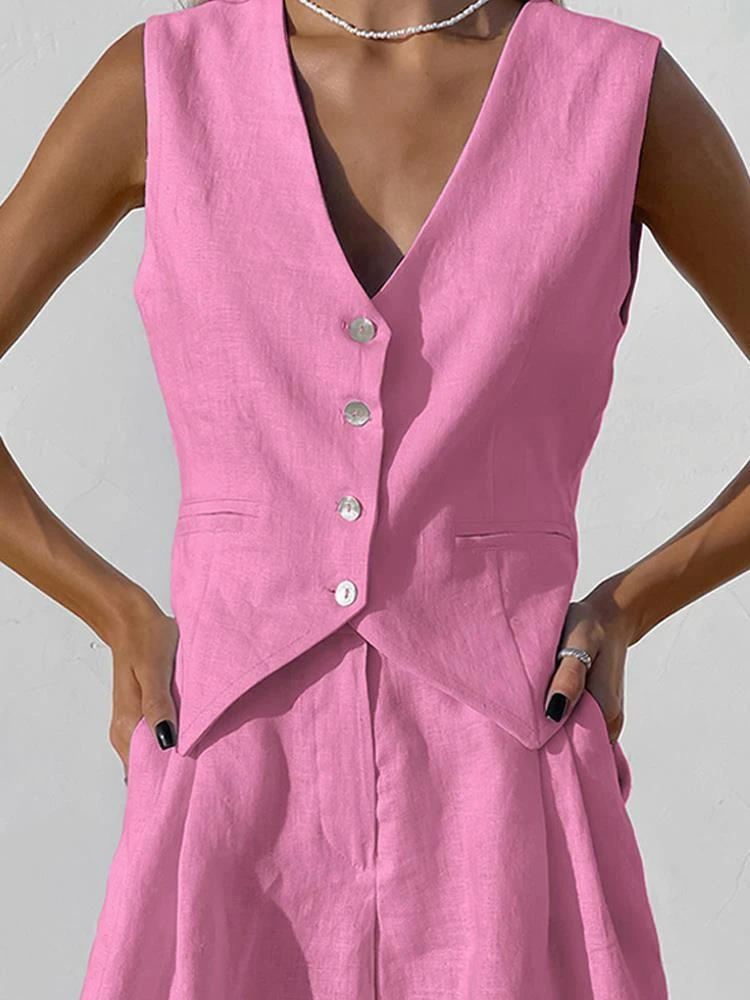 2023 Summer New Fashion Solid Color Cotton Pajamas Womens Two-piece Linen Vest Shorts Pocket Outside The Ladies Home Clothing