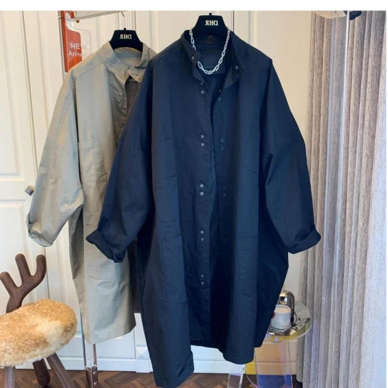 2023 Winter Korean Casual Style Solid Color Single Breasted Basics Windbreaker Women's Office Lady Style Parkas Trench Coat