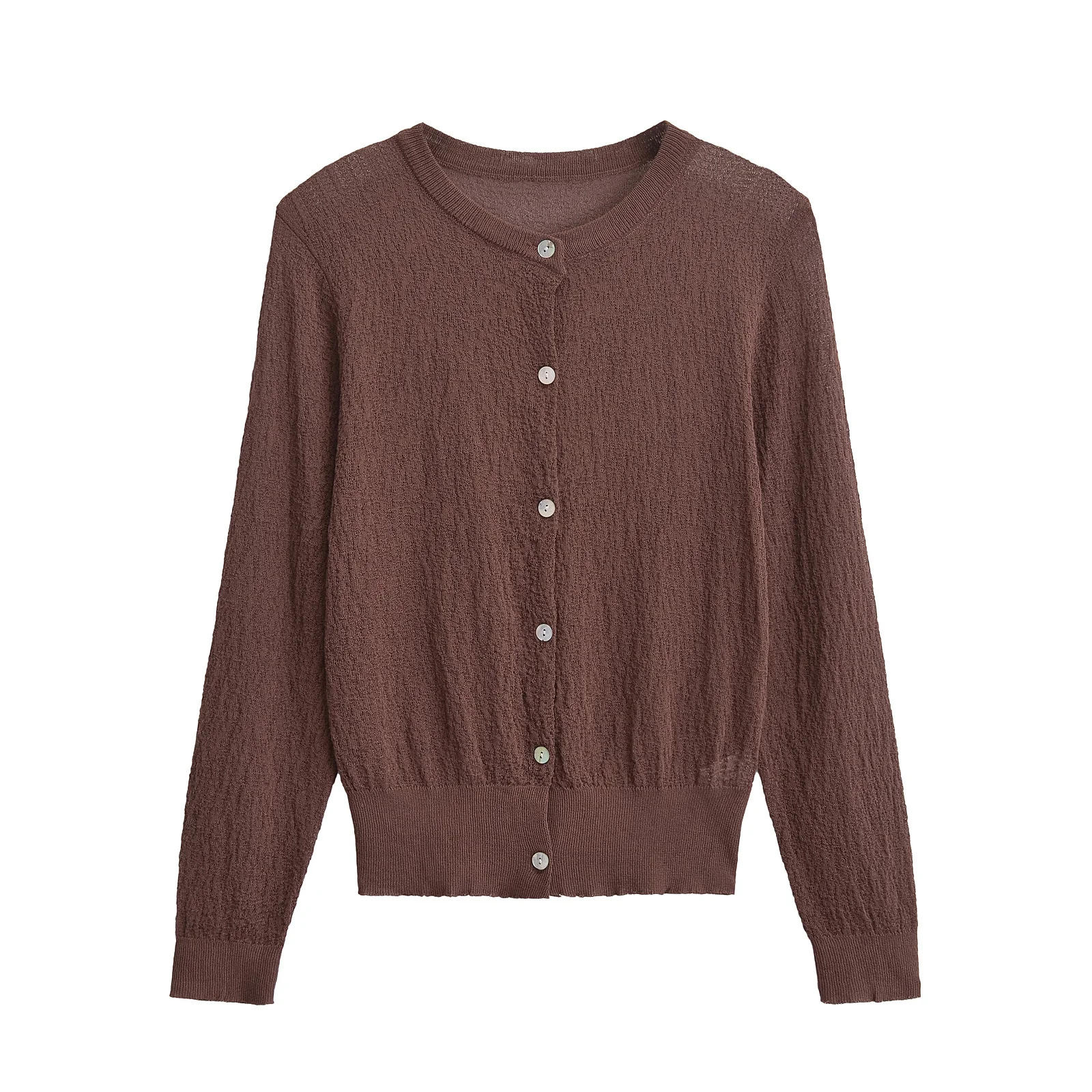 2024 Autumn New Women's Lazy Style Round Neck Long Sleeve Single Breasted Fine Needle Knit Cardigan Jacket