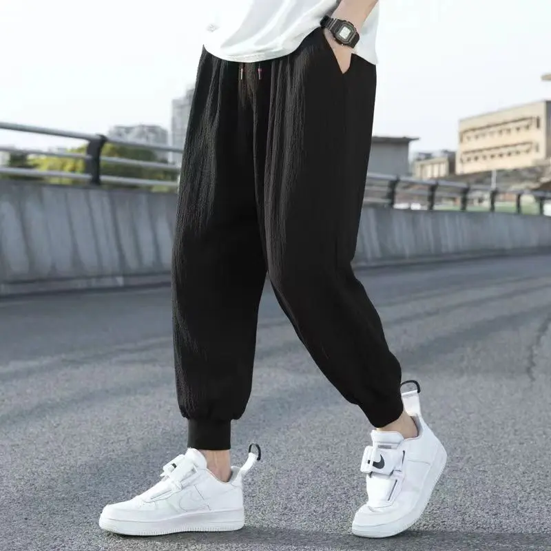 2024 New Summer Fashion Ultra-thin Style Versatile Loose Casual Oversized Trend Ice Silk Quick Drying Cropped Leggings for Men