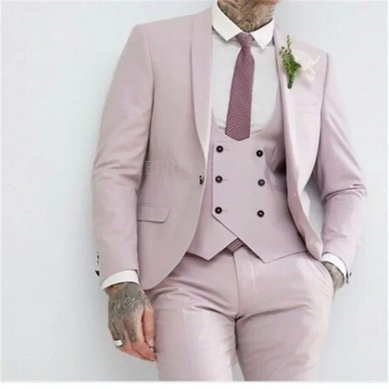 2024 Pink Wedding Men Suit High Quality Peak Lapel Bridegroom Slim Fit Formal Groom Tuxedo Male Blazer Hombre Elegante Moderno