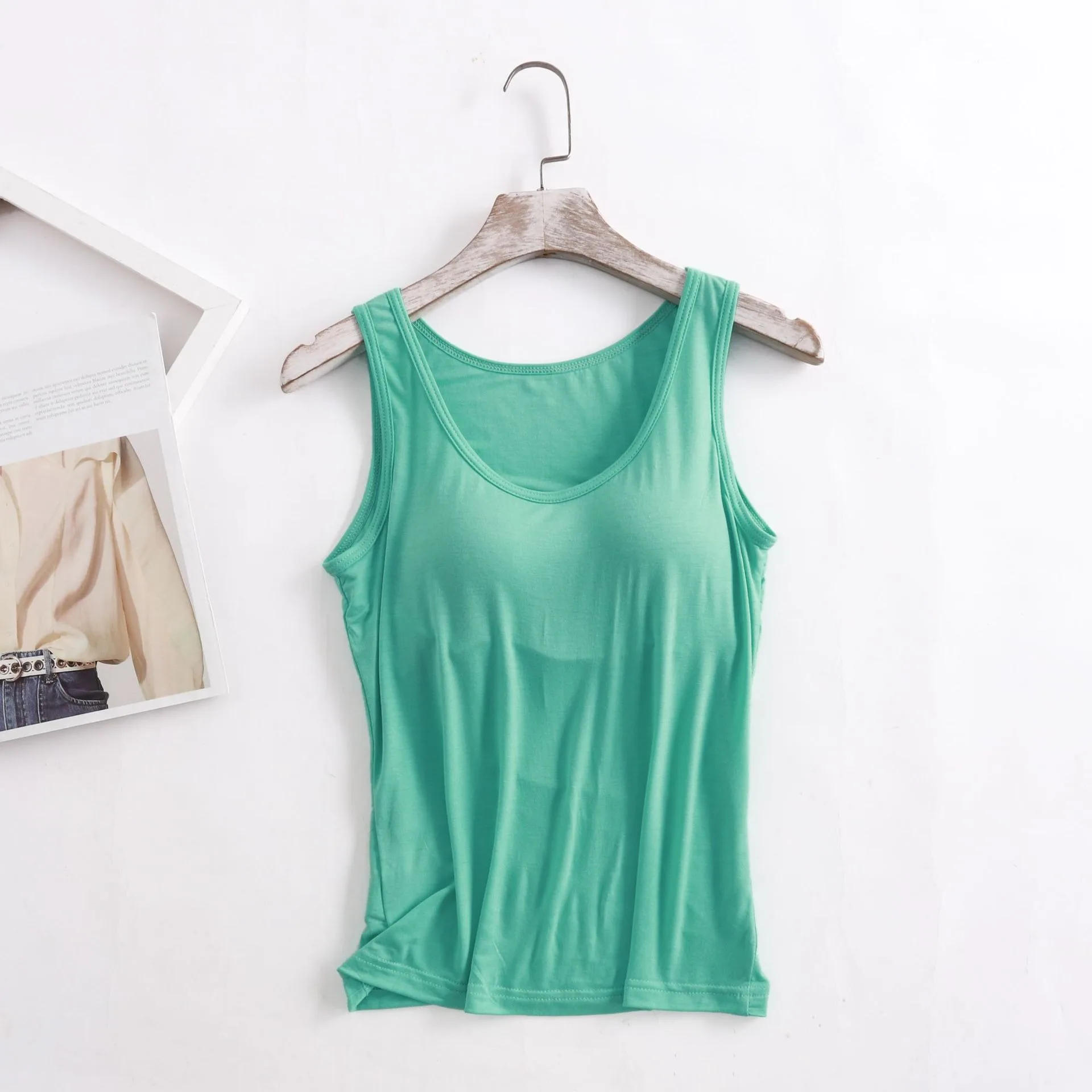 2024 Women's Vest Tops With Built In Bra Neck Vest Padded Slim Fit Tank Tops Sexy Shirts Feminino Casual Underlay Shirt Slimming