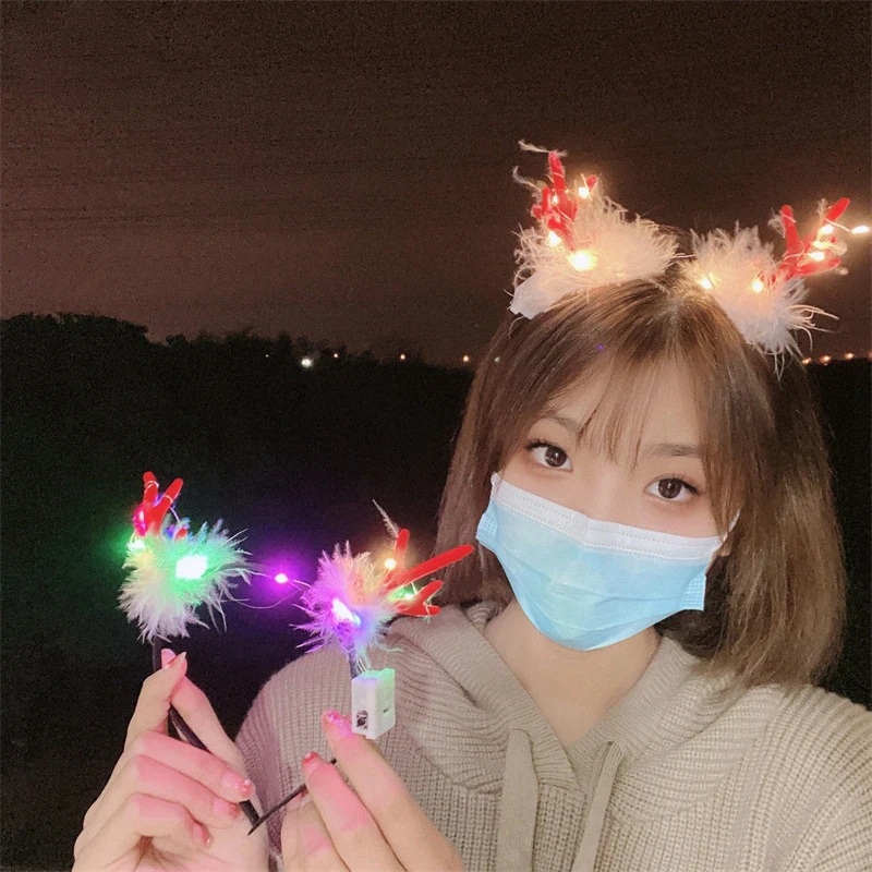 2025 Christmas Led Headbands Plush Hair Accessories Antlers Deer Ear Hair HoopLed Glowing Headband Xmas Festival Photo Props 머리띠