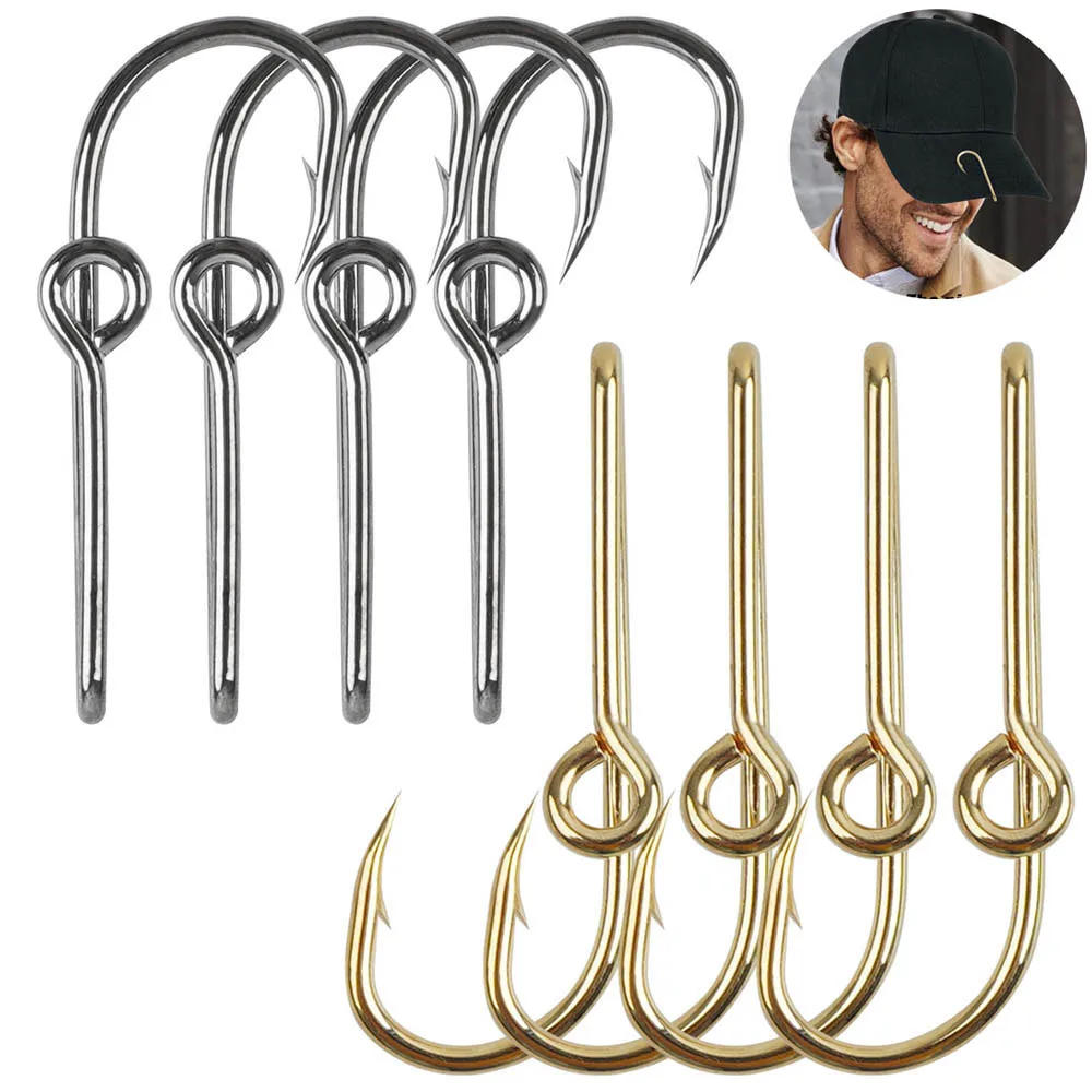 20Pcs Fish Hook Hat Clip Hats Pins for Men Gold/Black Bent Circle Fishing Hooks hat pins for craft Cap Hat Tie Clasp Money Clip
