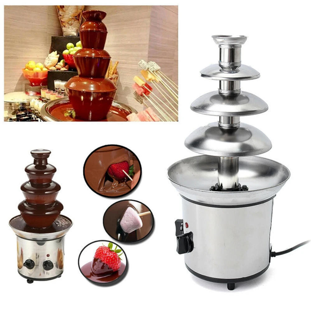 220V Chocolate Fountain 4 Tiers Electric Melting Machine Fondue Pot Set for Chocolate Candy Ranch Nacho Cheese