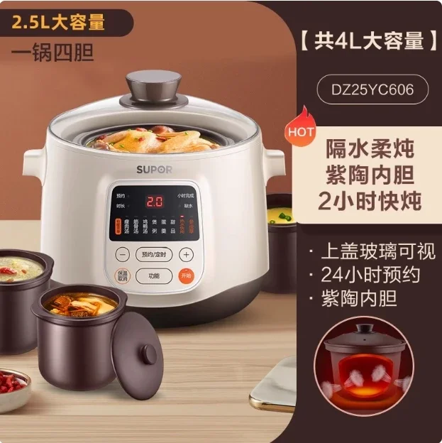 220V SUPOR Electric Steamer Automatic Ceramic Pot For Soup Porridge Home Cooking